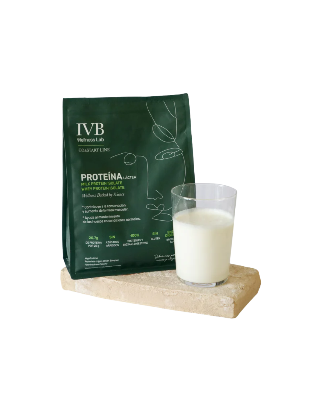 La proteína láctea IVB es un preparado alimenticio en polvo elaborado con aislado de proteína de leche (MPI) y aislado de proteína de suero (WPI).